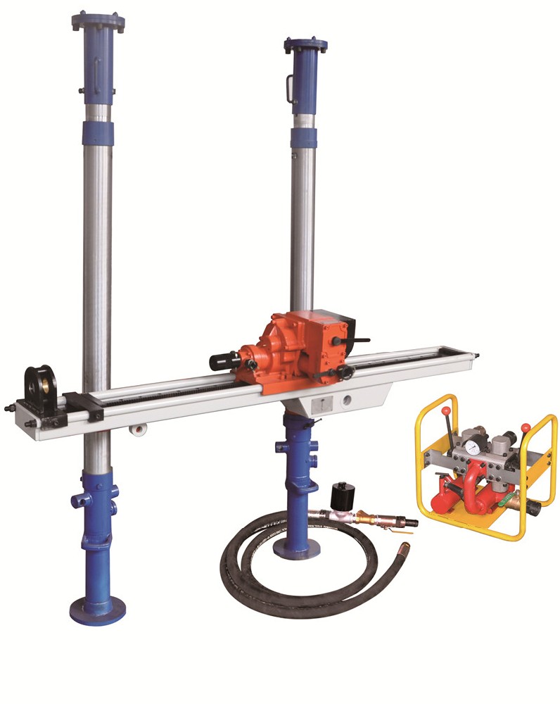 一般礦井在掘進(jìn)前都要進(jìn)行超前探放水,利用氣動架柱鉆機(jī)等探水設(shè)備打幾十米甚至一百米的探水孔,根據(jù)鉆頭的推進(jìn)速度、巖屑成分等地質(zhì)資料,初步斷定巷道周圍的水質(zhì)水量,因此氣動架柱鉆機(jī)是預(yù)防突水、涌水等災(zāi)害的發(fā)生主要工具。