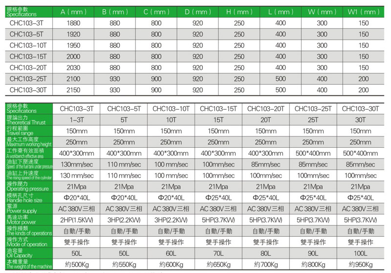 CHC103 C型油壓機系列特點及優(yōu)點